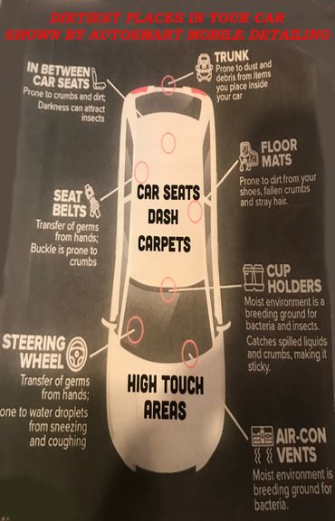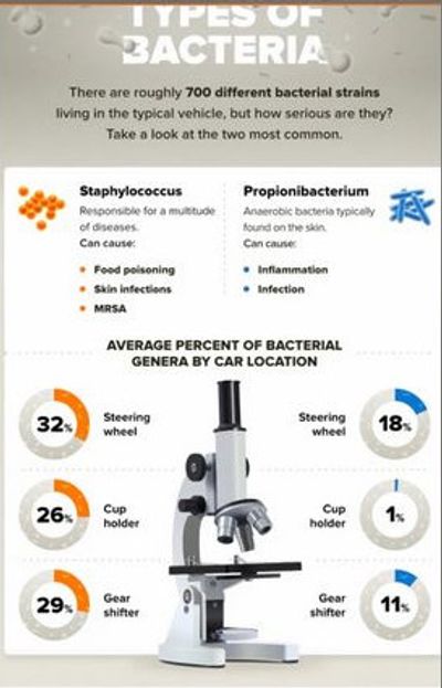 Research shows that car steering wheels & interiors are teeming with Bacteria. Up to 700 potentially Dangerous germs per square inch.